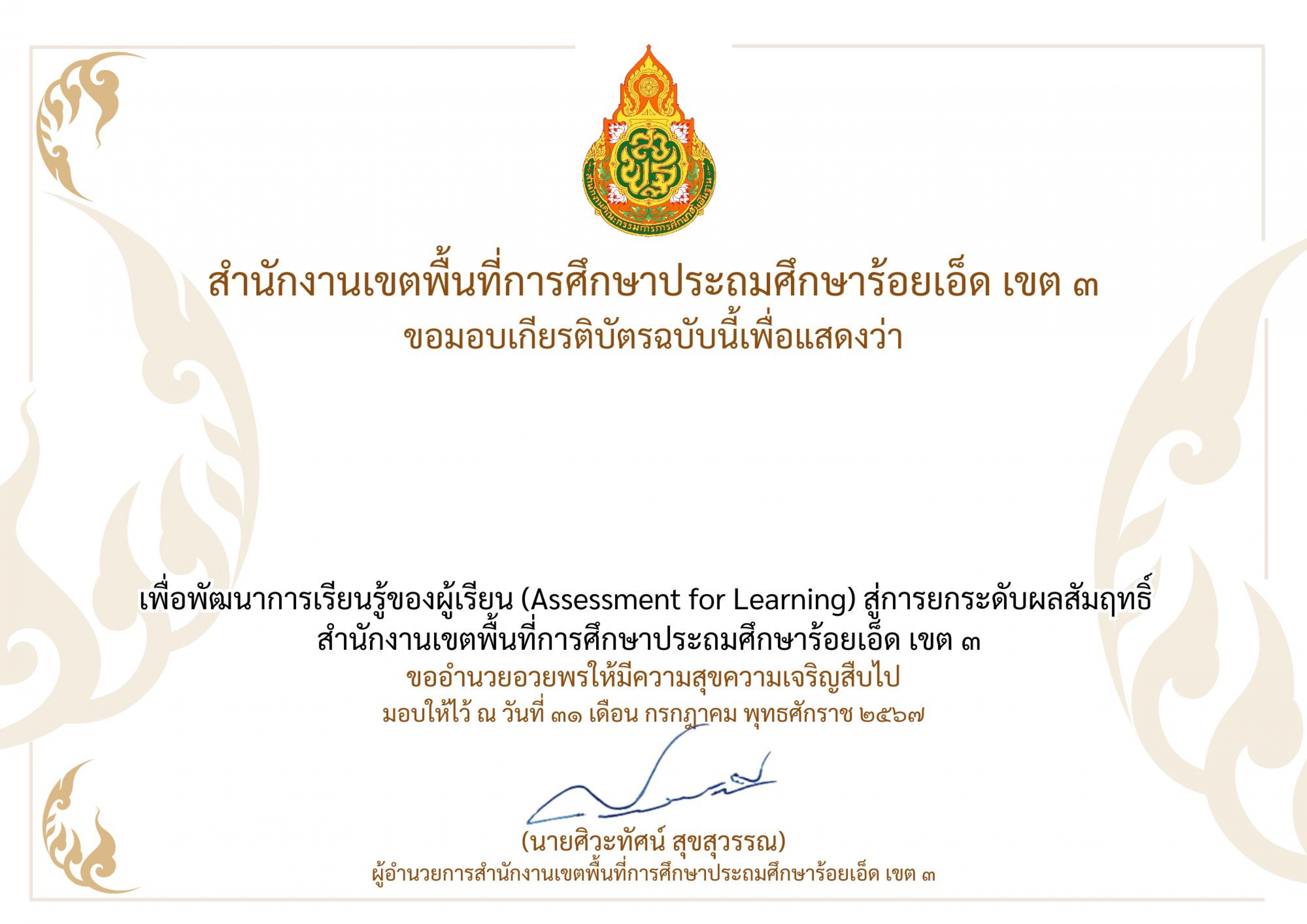 เกียรติบัตรการประชุมเชิงปฏิบัติการ Assessment for Learning |